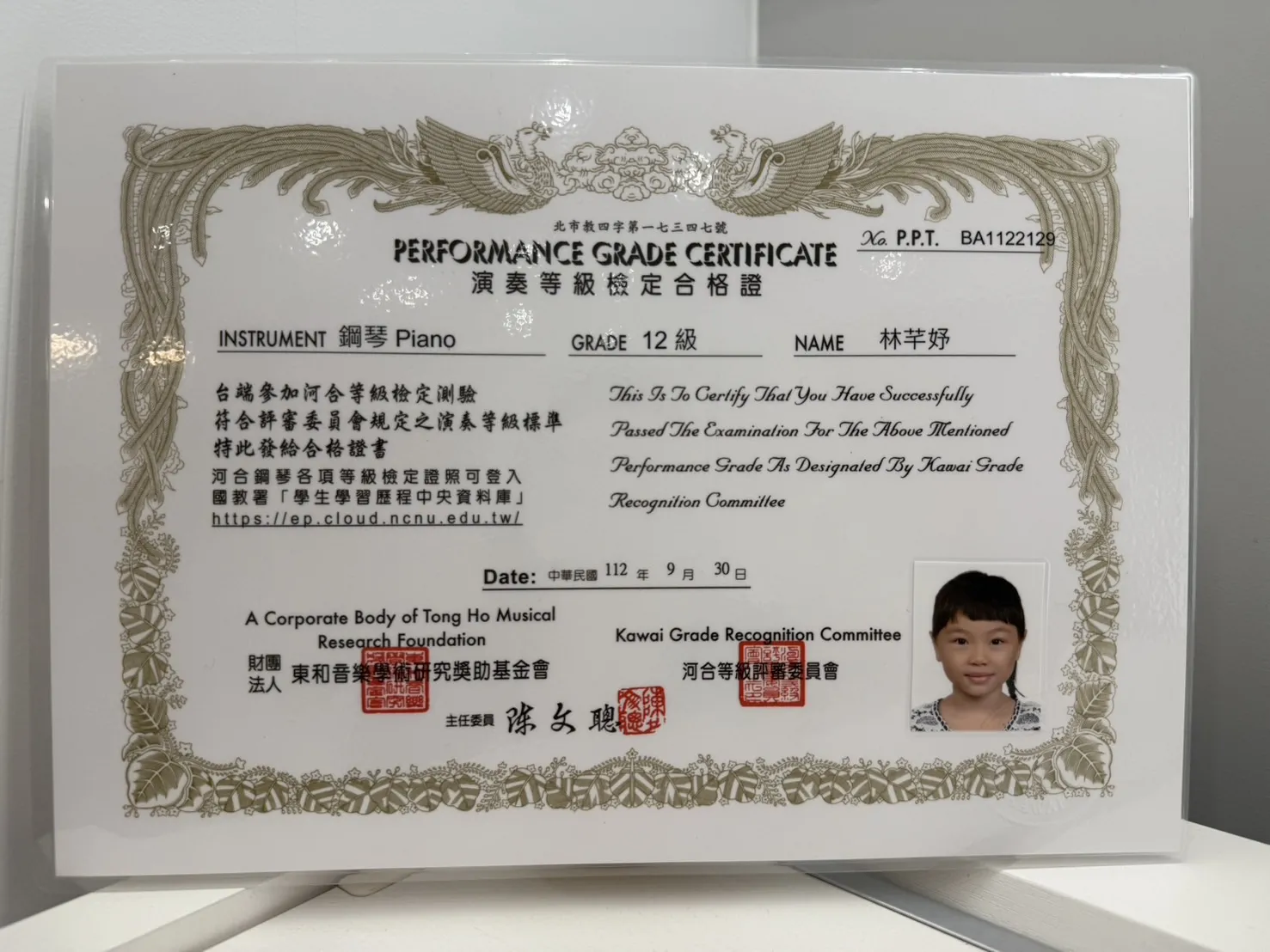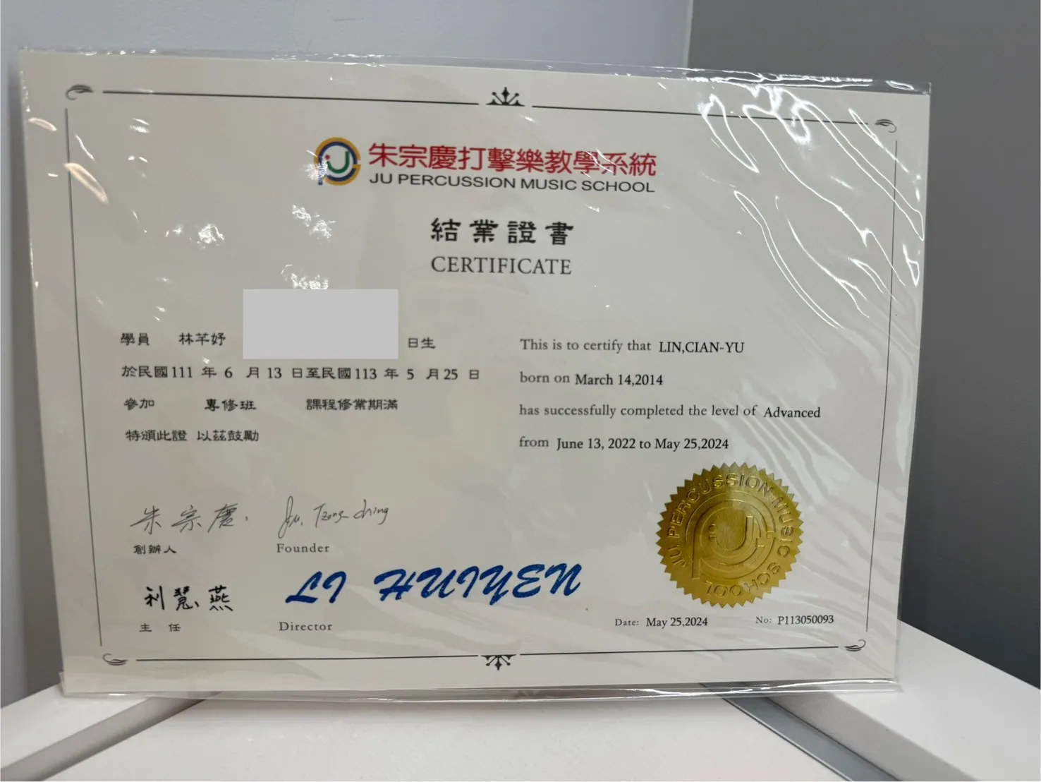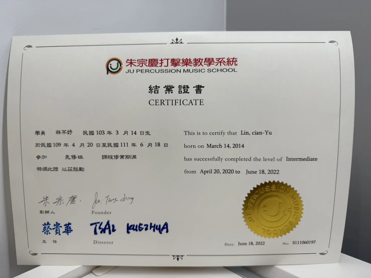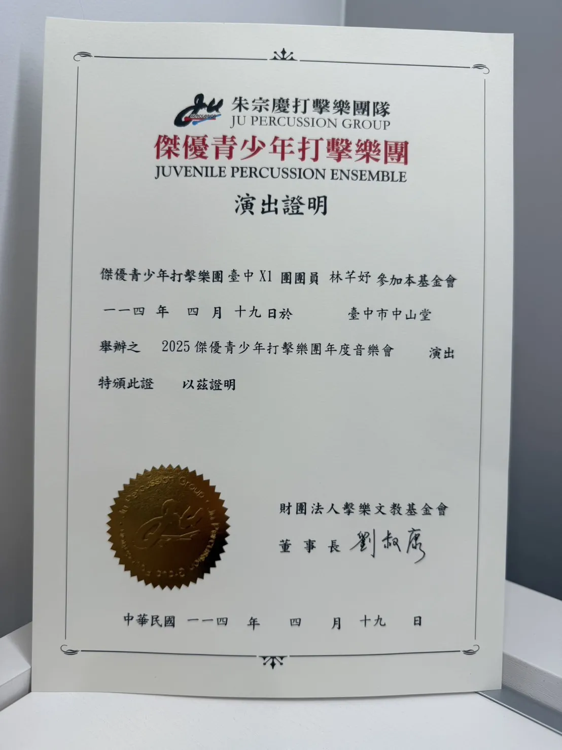 打擊樂證書