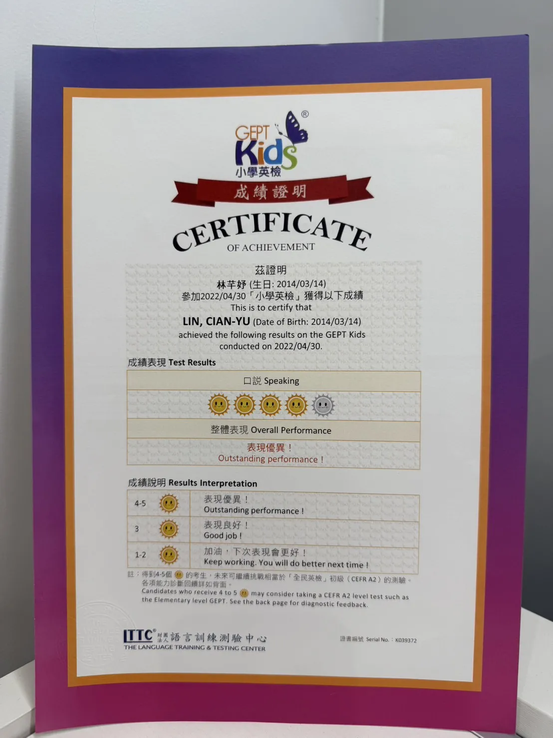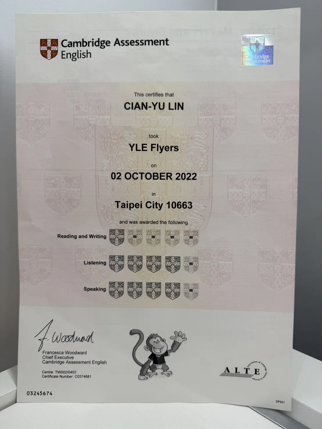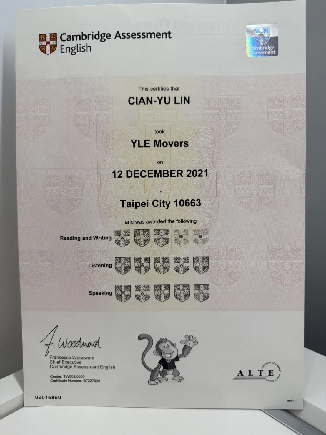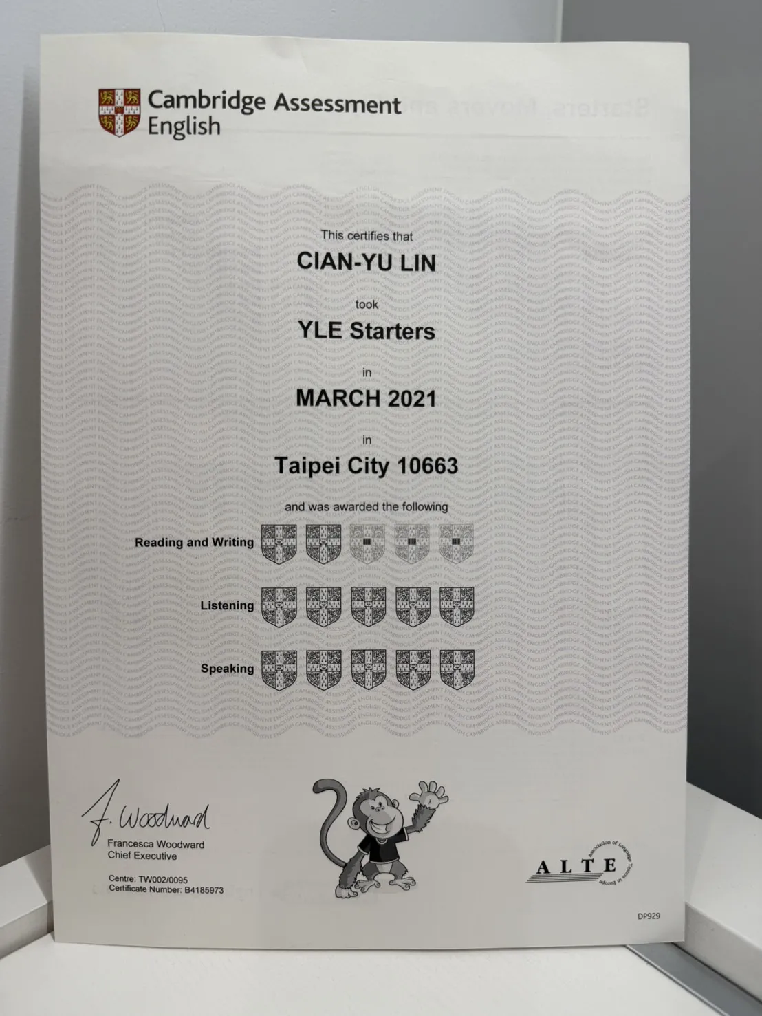 打擊樂證書
