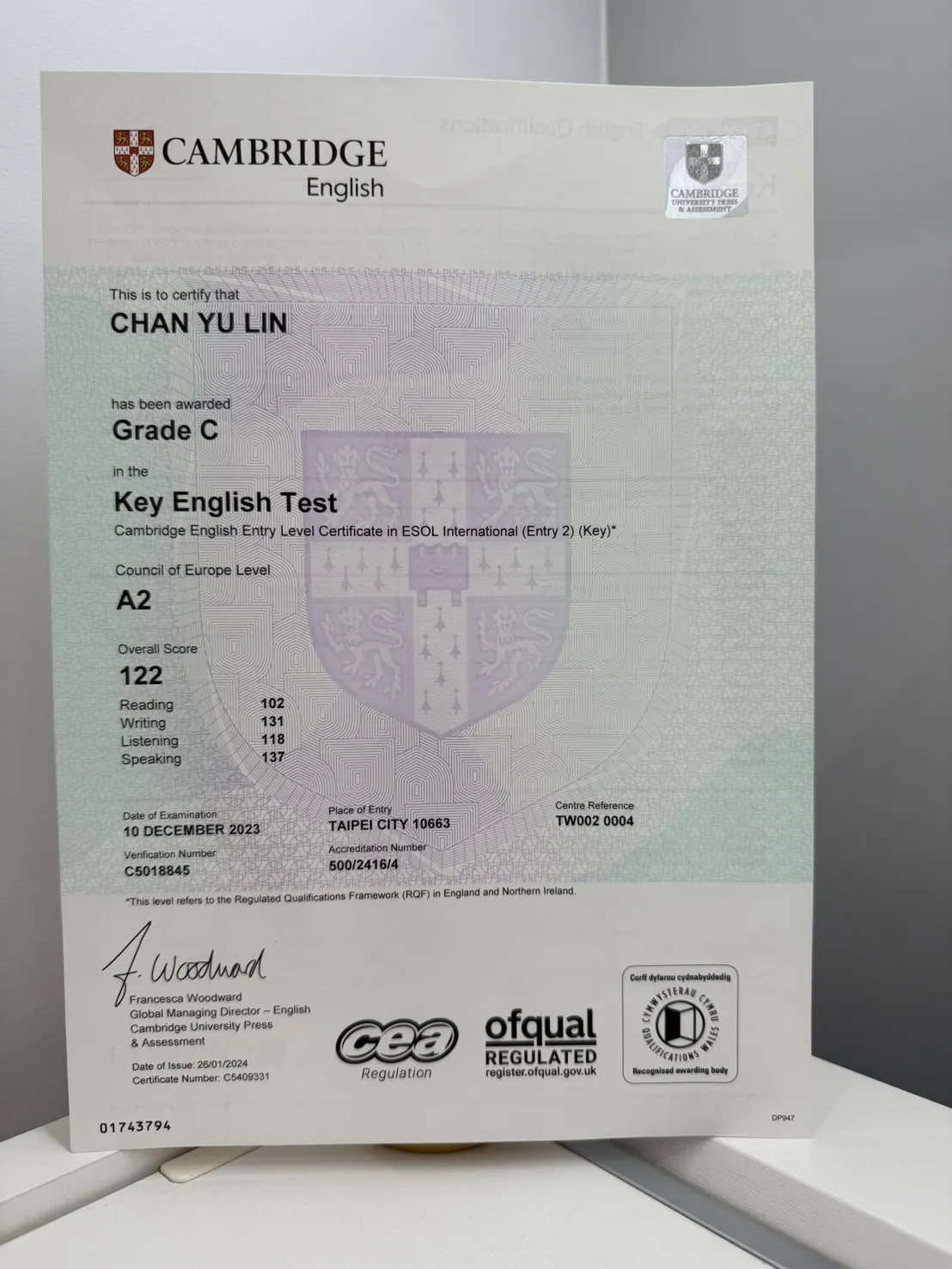 檢定證書