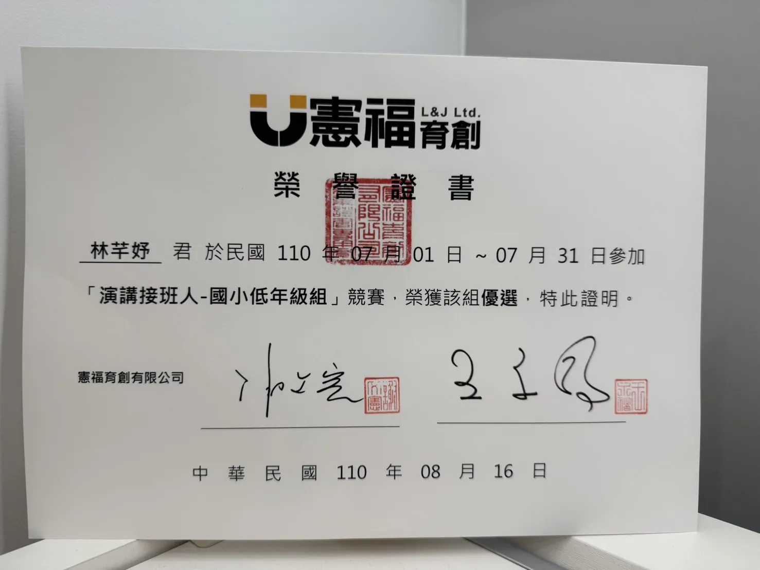 投稿獎狀